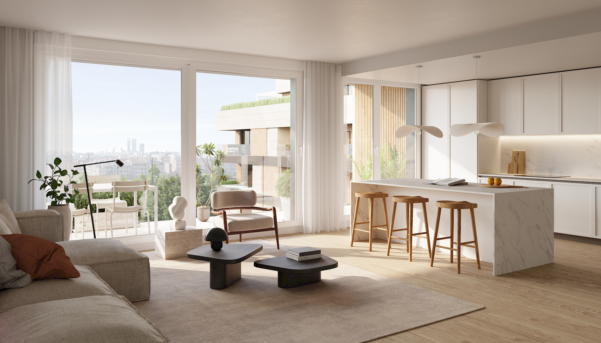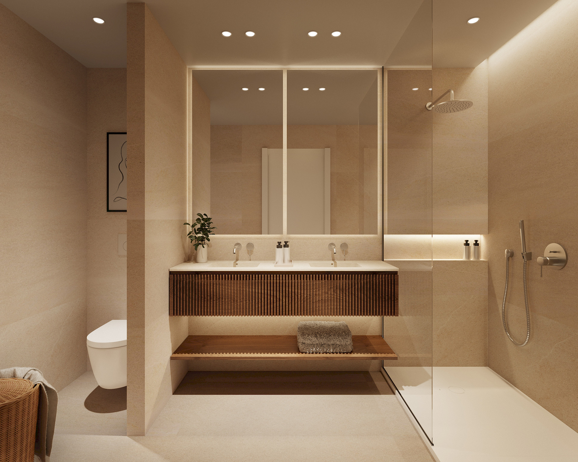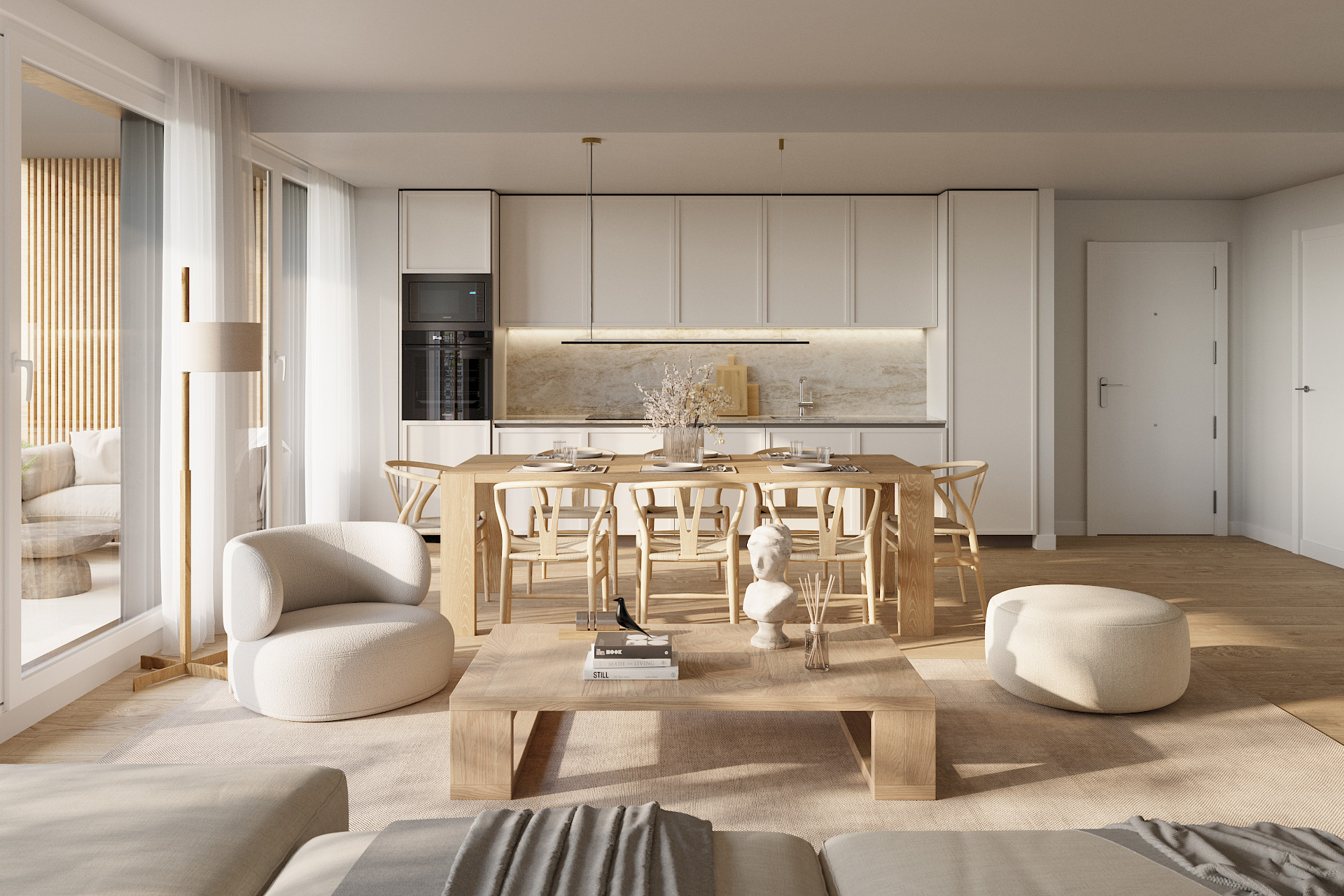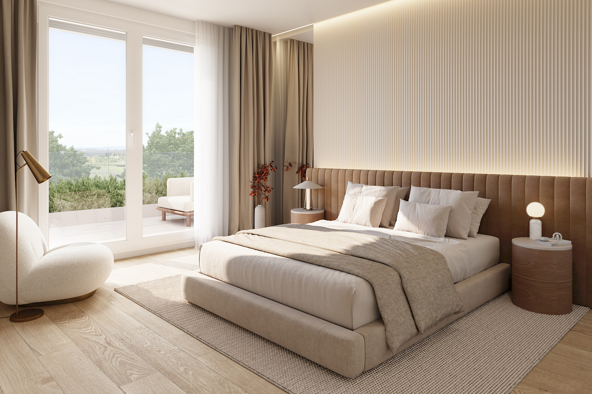 Las habitaciones, amplias y cálidas, garantizan un descanso óptimo, mientras que los baños, con un diseño sofisticado, combinan estilo y funcionalidad. El interiorismo, tanto en las viviendas como en las zonas comunes, se ejecutará con materiales exclusivos, creando espacios únicos, llenos de luz y ventilación natural. Además, las terrazas y balcones han sido diseñados como una extensión del hogar, permitiendo disfrutar del exterior con total comodidad. La combinación de diseño, confort y eficiencia energética convierte cada vivienda en un lugar excepcional para vivir.